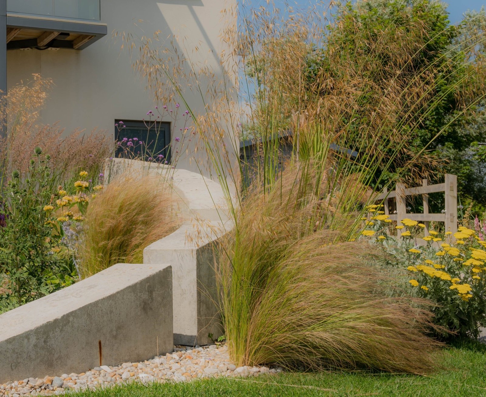 Our Kent-based garden designers select plants that do well in coastal settings with salty breezes and sandy soil. This allows the garden to stay strong and not need much care. The changing colours and textures make the landscape interesting all year long.